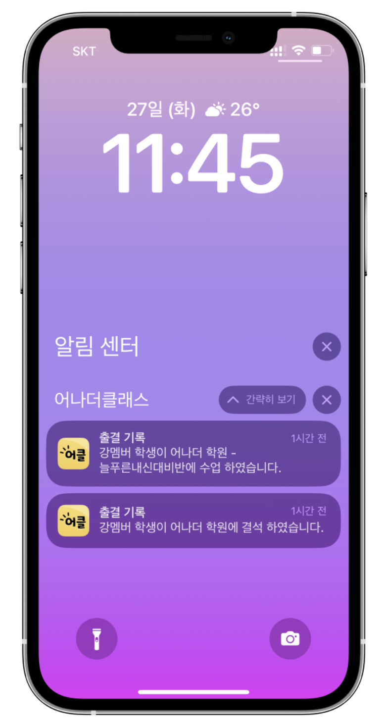 - 실시간 출결 알림(앱 푸시 또는 문자)