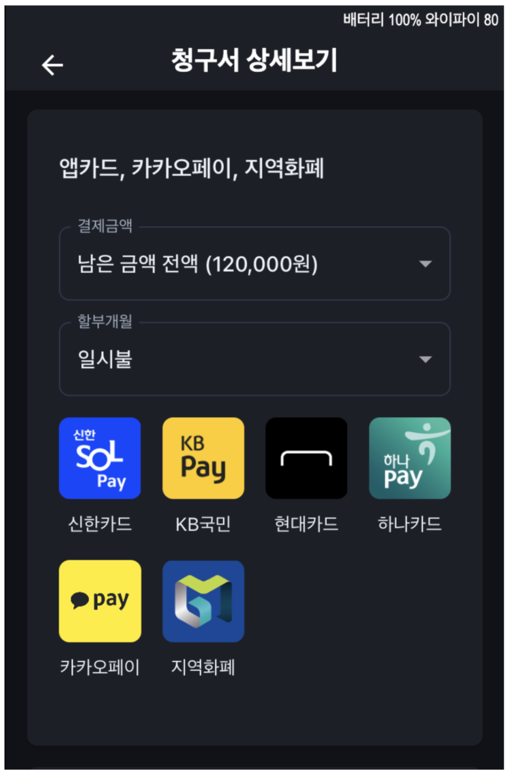 KONA계열 지역화폐: KB Pay에 등록 후 결제 (인천이음, 울산페이, 청주페이 등).