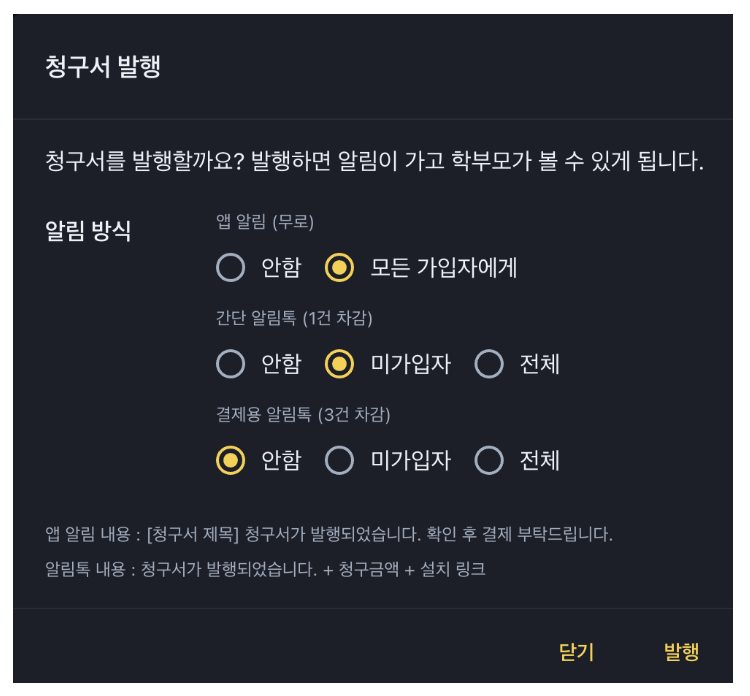 최근 어나더클래스가 업데이트한 학원비결제 신기능은 정말 게임 체인저예요. 앱카드 결제(신한, KB국민, 현대, 하나 카드 지원)와 경기지역화폐(코나 시리즈, 가평 GP페이, 고양페이 등) 결제가 추가됐어요. 카카오페이나 KB페이 앱으로 간단히 등록하면, 별도 인증 없이 바로 결제 가능하니 부모님들의 편의성이 폭발적으로 올라갑니다. 비회원 부모님께도 카카오 알림톡으로 결제 링크를 보낼 수 있어(건당 16.5원~49.5원 정도의 소액), 앱 설치 없이도 결제가 이뤄지죠. 이 기능 덕분에 학원비결제 이용률이 높아지고, 학원의 지역 커뮤니티 참여도도 UP!