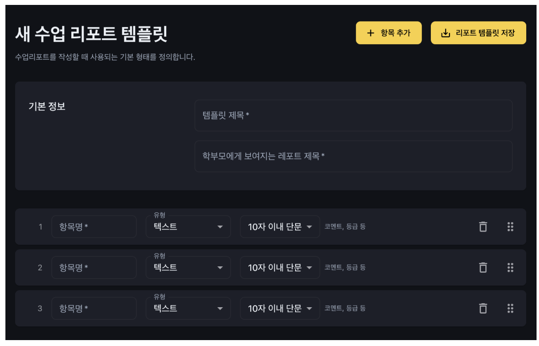 1. 리포트 템플릿 만들기: 우리 학원만의 맞춤 설계로 학원생활공유 쉽게