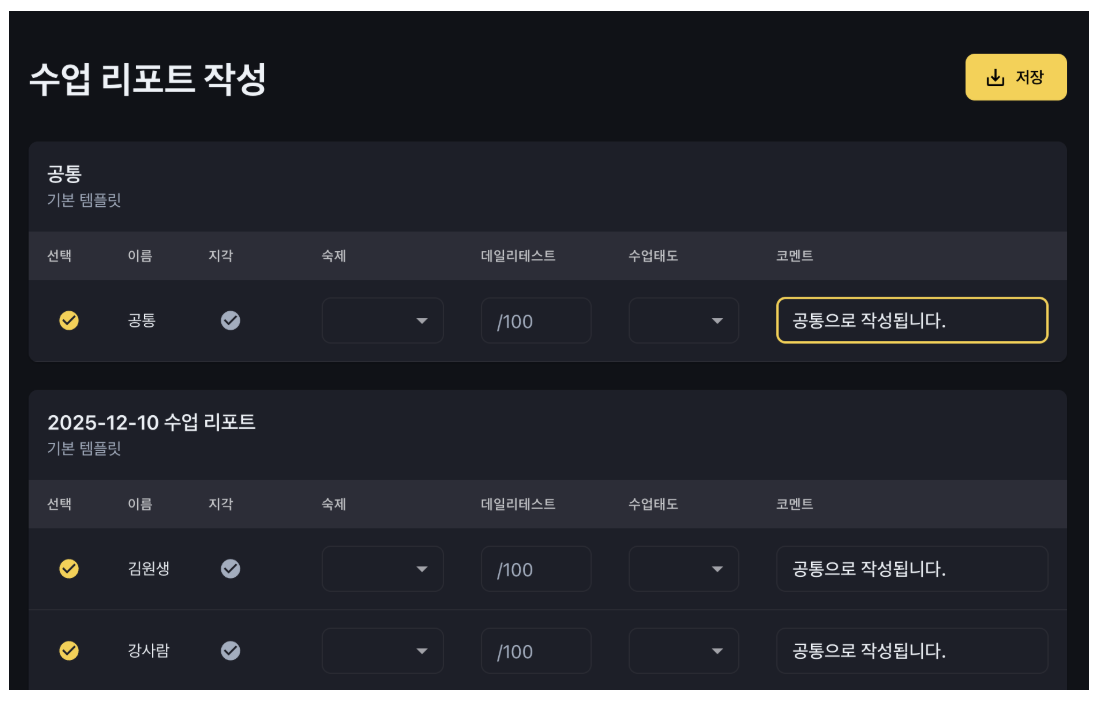 2. 리포트 배치 작성: 여러 학생 한 번에 처리로 시간 절약