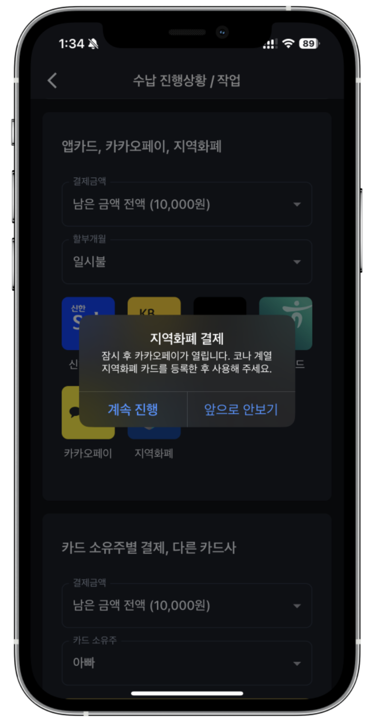 - 학원비지역화폐결제예요.