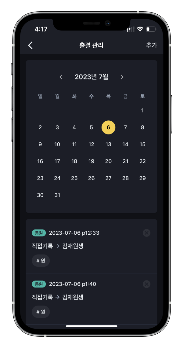 어나더클래스에서 제공하는 학원출결관리시스템은 다양한 방식으로 다양한 기기에서 모두 가능합니다. 선생님이 기록할 수도 있고 학생이 기록 할 수도 있습니다. 그리고 선생님의 근태도 함께 기록할 수 있어요!