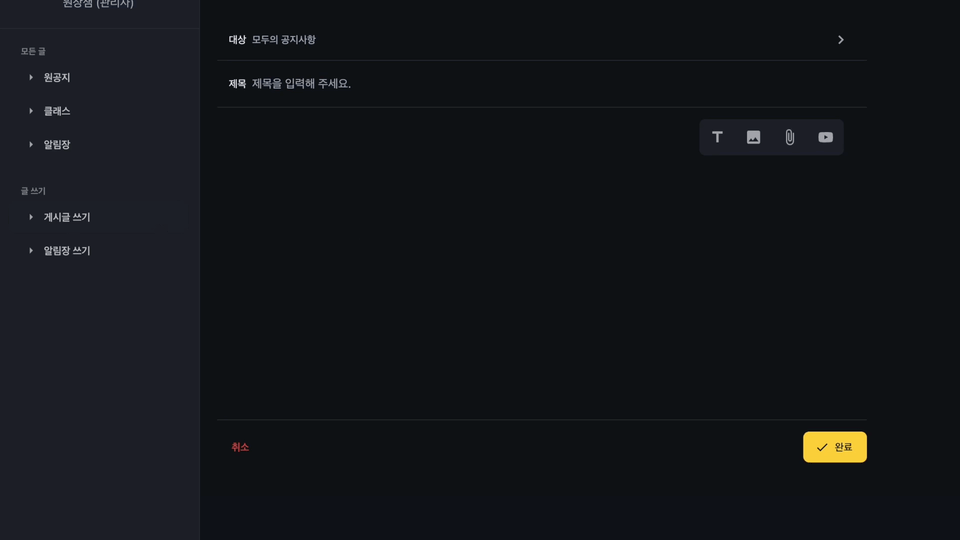 어나더클래스의 게시글 쓰기와 알림장 쓰기는 모두 pc와 모바일에서 가능합니다.