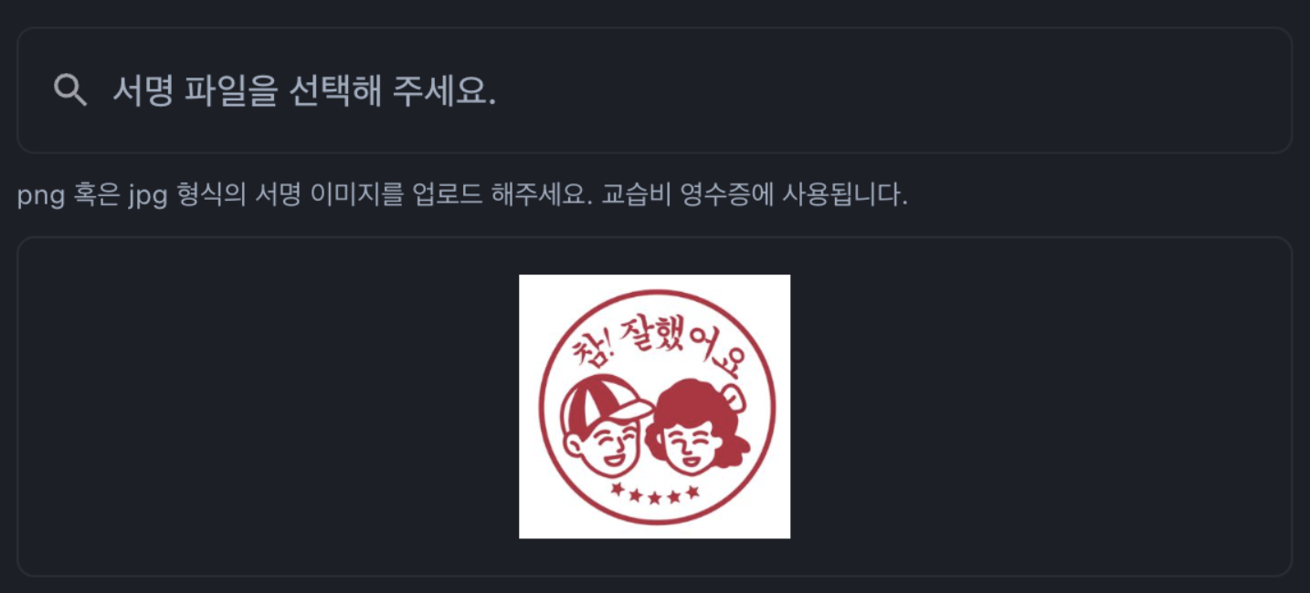 서명이미지는 pc - 학원비 - 사업자별 정보 설정에서 등록해둘 수 있습니다.
