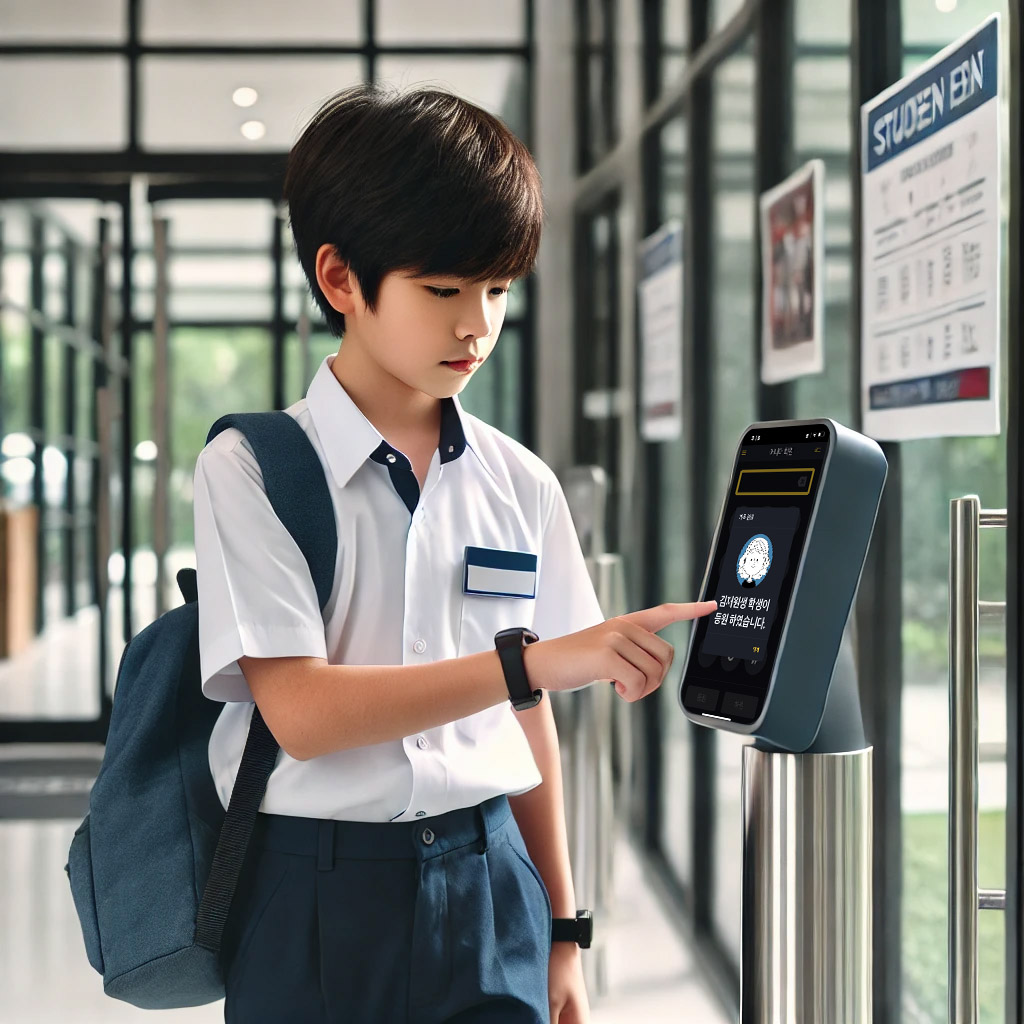 초기 장비 도입 비용에서 약 20만원을 절약할 뿐만 아니라, 매월 운영 비용에서도 4만원을 절약할 수 있습니다. NFC/RFID 기기를 구매하고 유지하는 데 드는 불필요한 비용을 절약할 수 있습니다. 학생이 등하원시 번호를 터치하면 알림이 가고 고학년의 경우는 학생의 번호를 이용할 수도 있어요.
